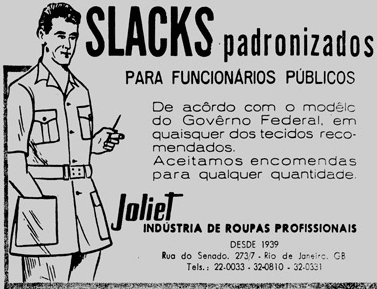 O segundo ato foi mandar pintar todos os carros oficiais de preto e escrever na porta: Serviço publico federal/Uso exclusivo em serviço. Junto com essa medida, pensou em uniformizar os funcionários públicos. Todos teriam de usar um slack caqui para ir trabalhar. Da mulher do café até a chefe do almoxarifado. Do porteiro ao poderoso chefão. O uniforme foi logo apelidado de pijânio e nem deu tempo da moda pegar.